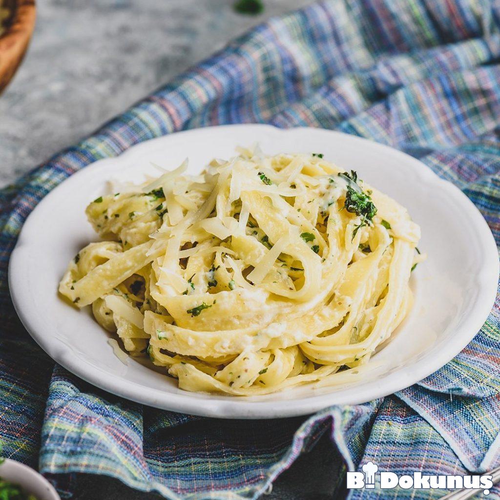 Fettuccine Alfredo veya fettuccine al burro, tereyağı ve Parmesan peyniri ile karıştırılmış taze fettuccine’den oluşan bir İtalyan makarna yemeğidir. Peynir eridikçe sıvıları emülsifiye ederek makarnayı kaplayan pürüzsüz ve zengin bir sos oluşturur.