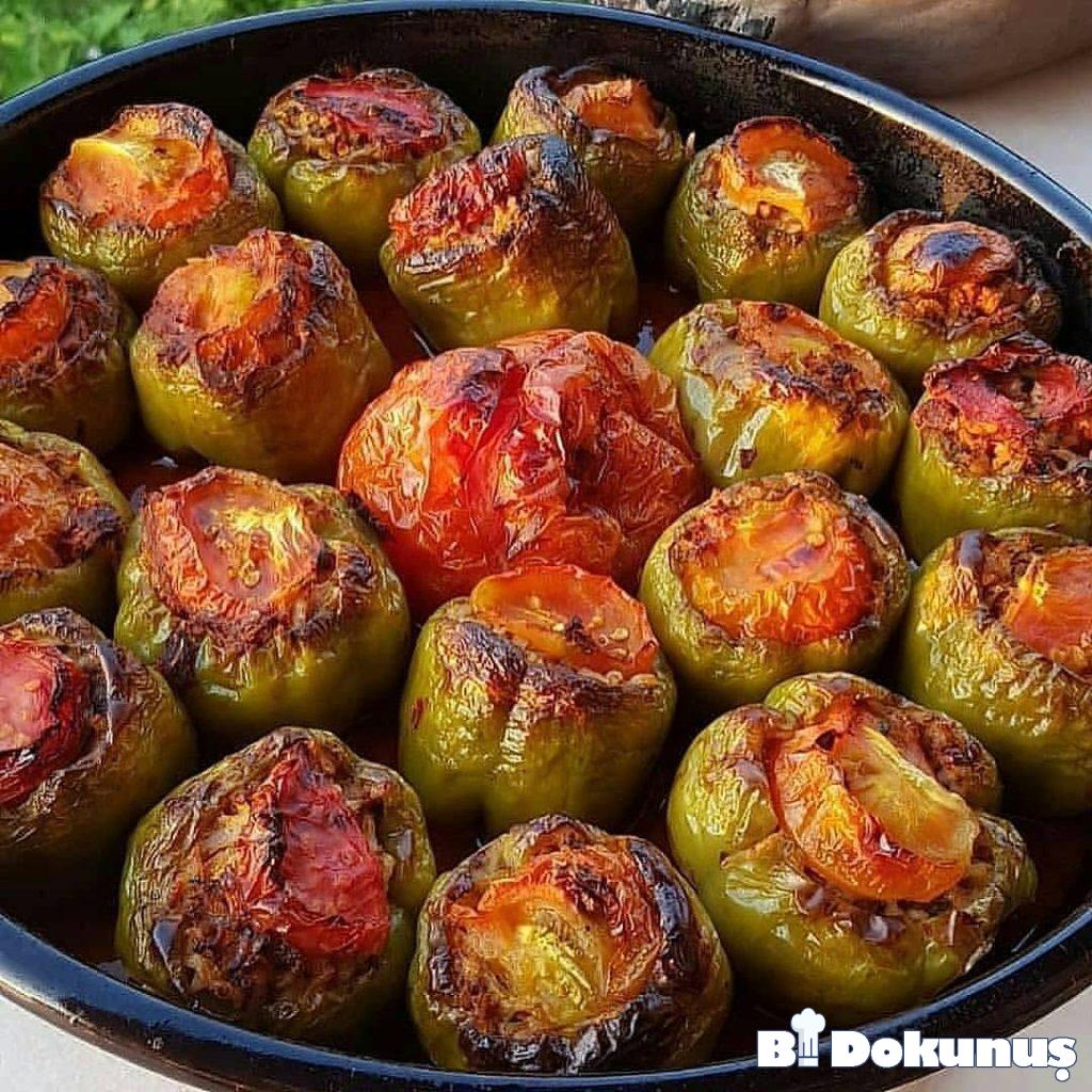 - Biberleri fırın tepsisine dizin, hazırladığınız tavuklu harcı biberlerin içine paylaştırın.