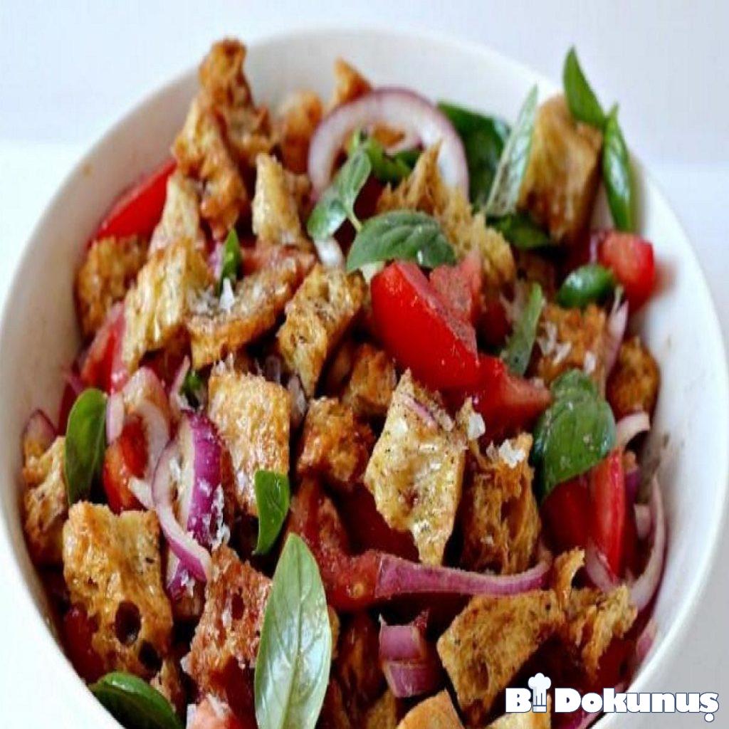 Bu salatadaki ekmek hariç her şey taze! Bu salatayı bir somun el yapımı ekmek veya biraz bayat olan biberiye ekmeği kullanarak hazırlayın. Ekmeğiniz çok taze ise, krutonun yarısı kadar kuru ve gevrek olana kadar kızartın.