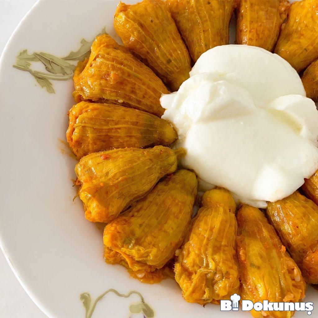- Kabak çiçeklerinin ortasındaki içi çiçekleri yırtmadan çıkartın. Hazırladığınız harcı çok sıkıştırmadan doldurun.