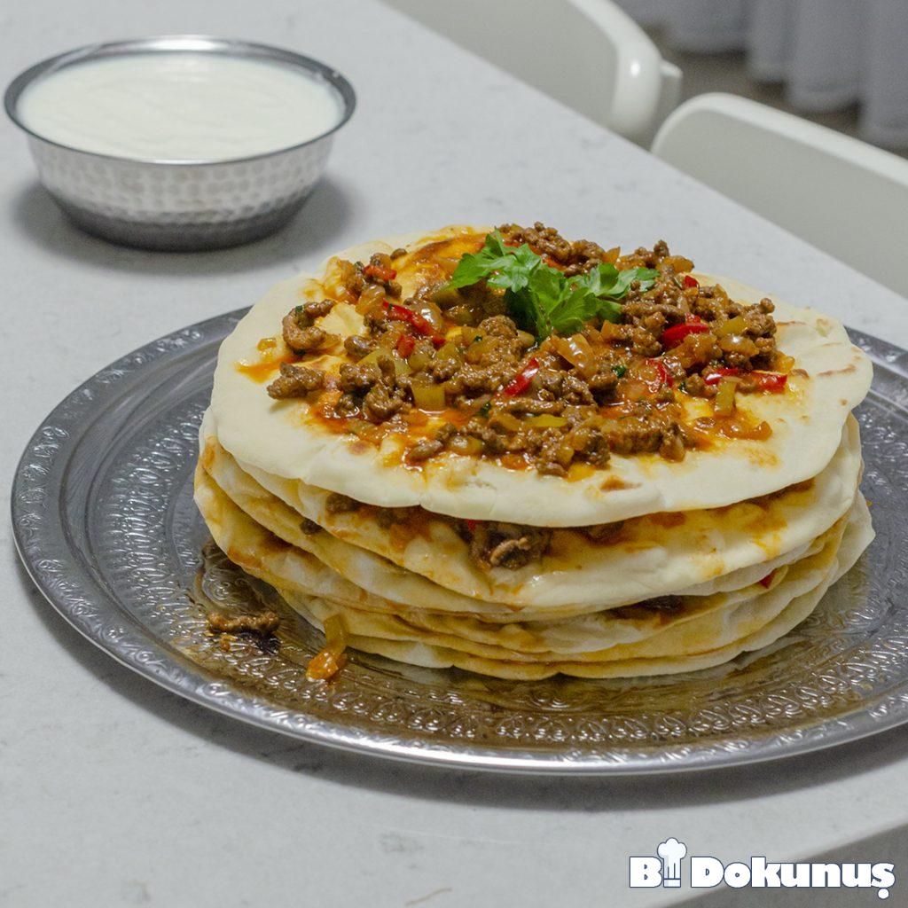 - Bu şekilde bir kat hamur bir kat kıyma olacak şekilde 12 kat yapıyoruz.