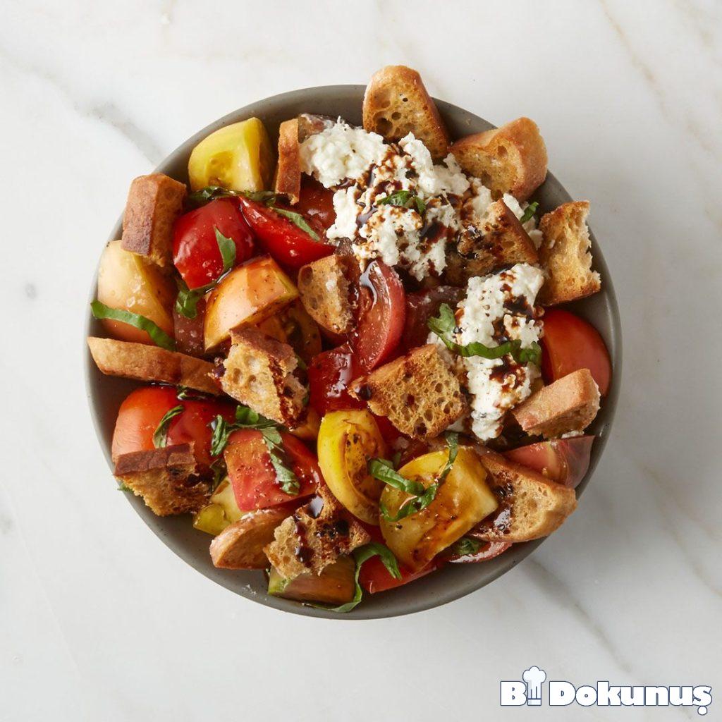 Sulu domates, ızgara kabak, patlıcan ve roka içeren İtalyan tarzı bir ekmek salatası olan çok tahıllı ekmeği bu yaz sebzeli panzanella‘yı salataların yıldızı haline getirin.