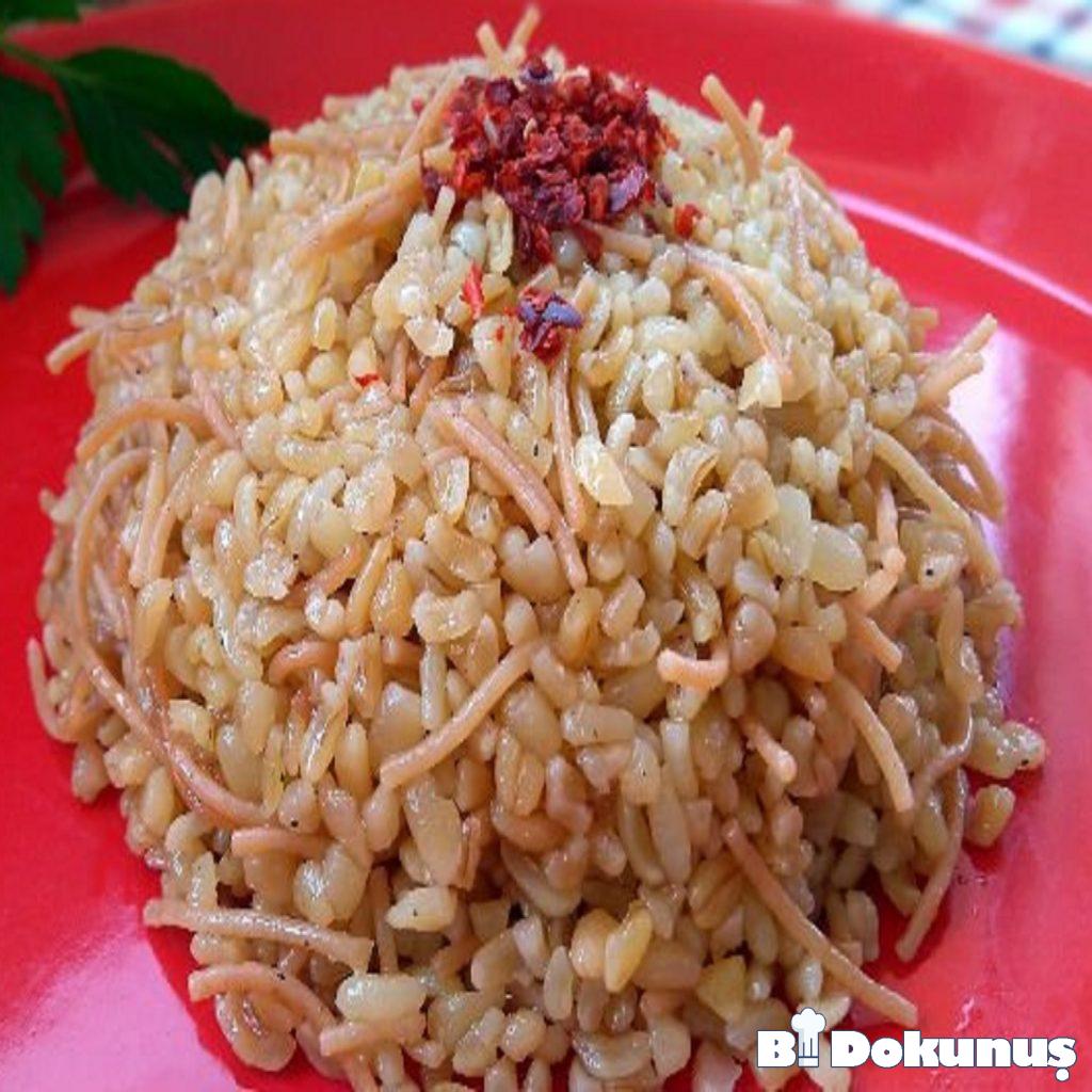 - Kavurduğumuz şehriyelerin üzerine bulgurumuzu da ilave edip 1-2 dakika kavurup suyumuzu ve tuzumuzu da ekleyip karıştırıyoruz.