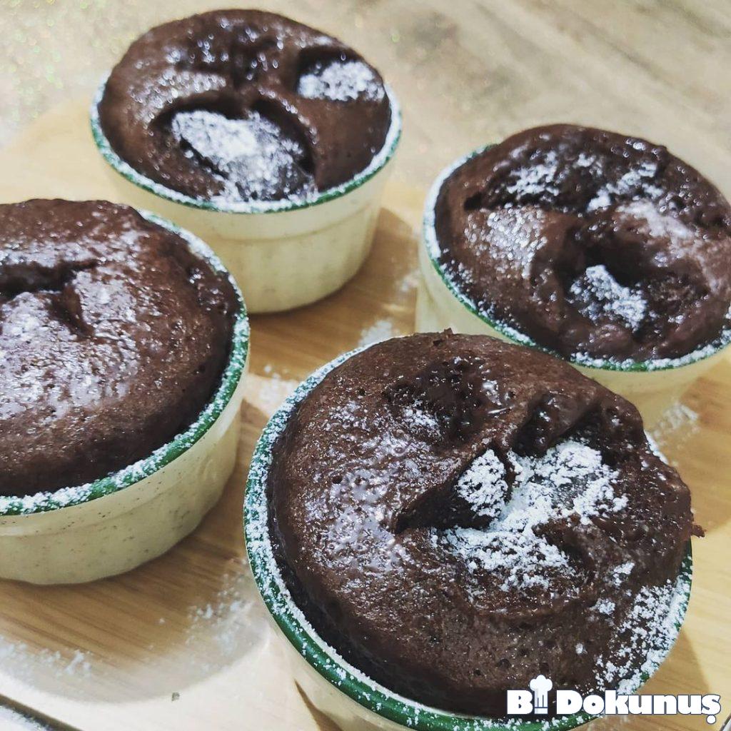 - Hazırladığımız kek hamurunu fincanların yarısına kadar gelecek şekilde koyalım.