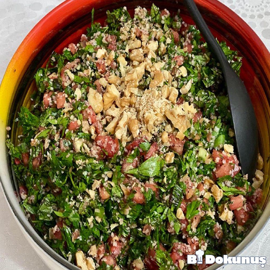 - Geniş bir kasede maydanoz, nane ve bulguru harmanlayın.