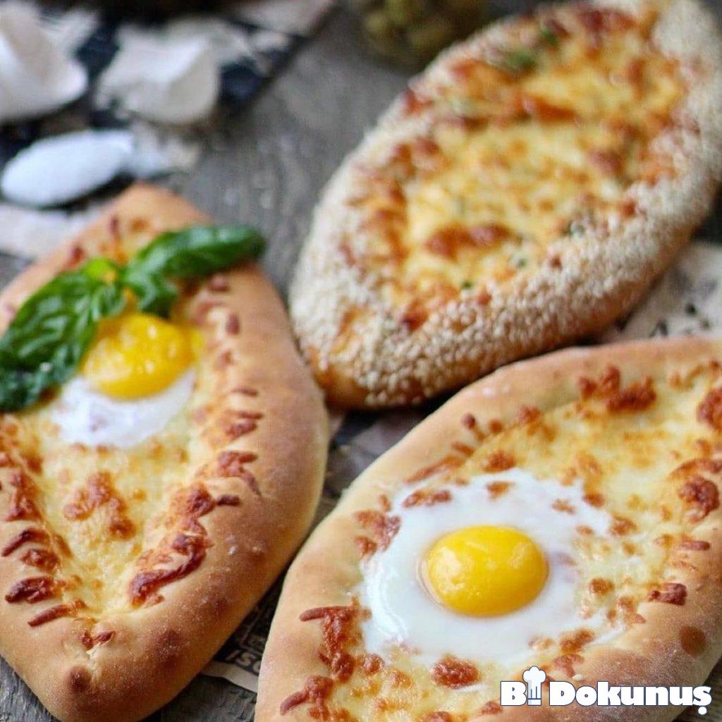 - Hamur mayalandıktan sonra 2’ye bölünür ve pide şeklini alacak şekilde açılır. Ardından fırın kağıdı serilmiş tepsiye konur ve elle üzerine şekil verilir. Hamurların tepside de mayalanması için yaklaşık 15 dakika da tepside bekletilir.