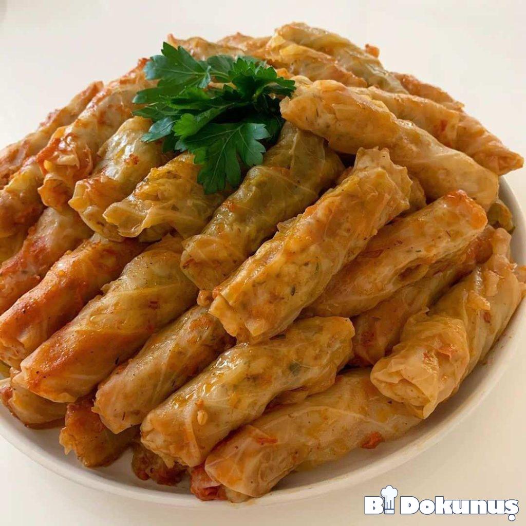 - Sardığımız lahanaları derin bir tencereye dizelim ve üzerine dolmanın kenarından görünecek kadar salçalı su hazırlayıp dökelim.